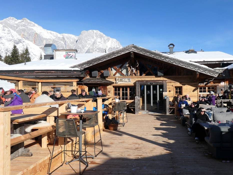 The Zapferlam offers a cozy place to stop and also has an après-ski umbrella bar – if it gets late, you can even ski directly down to Mühlbach.