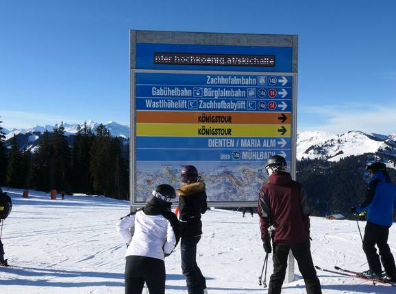 The signage on the slopes is very good. There are plenty of information boards, the slopes are numbered and appropriately signposted. There are also signs at junctions. The Königstour is optimally signposted.