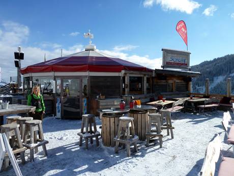 Throughout the entire ski area, umbrella bars await winter sports enthusiasts. At the valley stations, you can end your day in umbrella bars with good music.