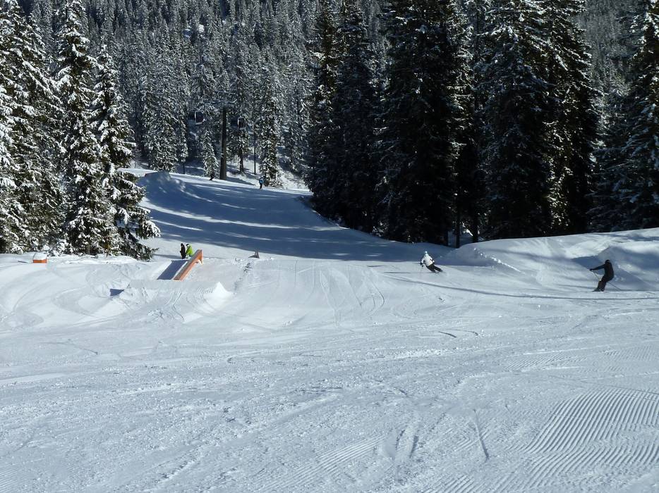The Blue Tomato Kings Park is located parallel to the Kings-Cab gondola and offers kickers and obstacles of all levels of difficulty along almost 2 km. The park is, of course, groomed daily.