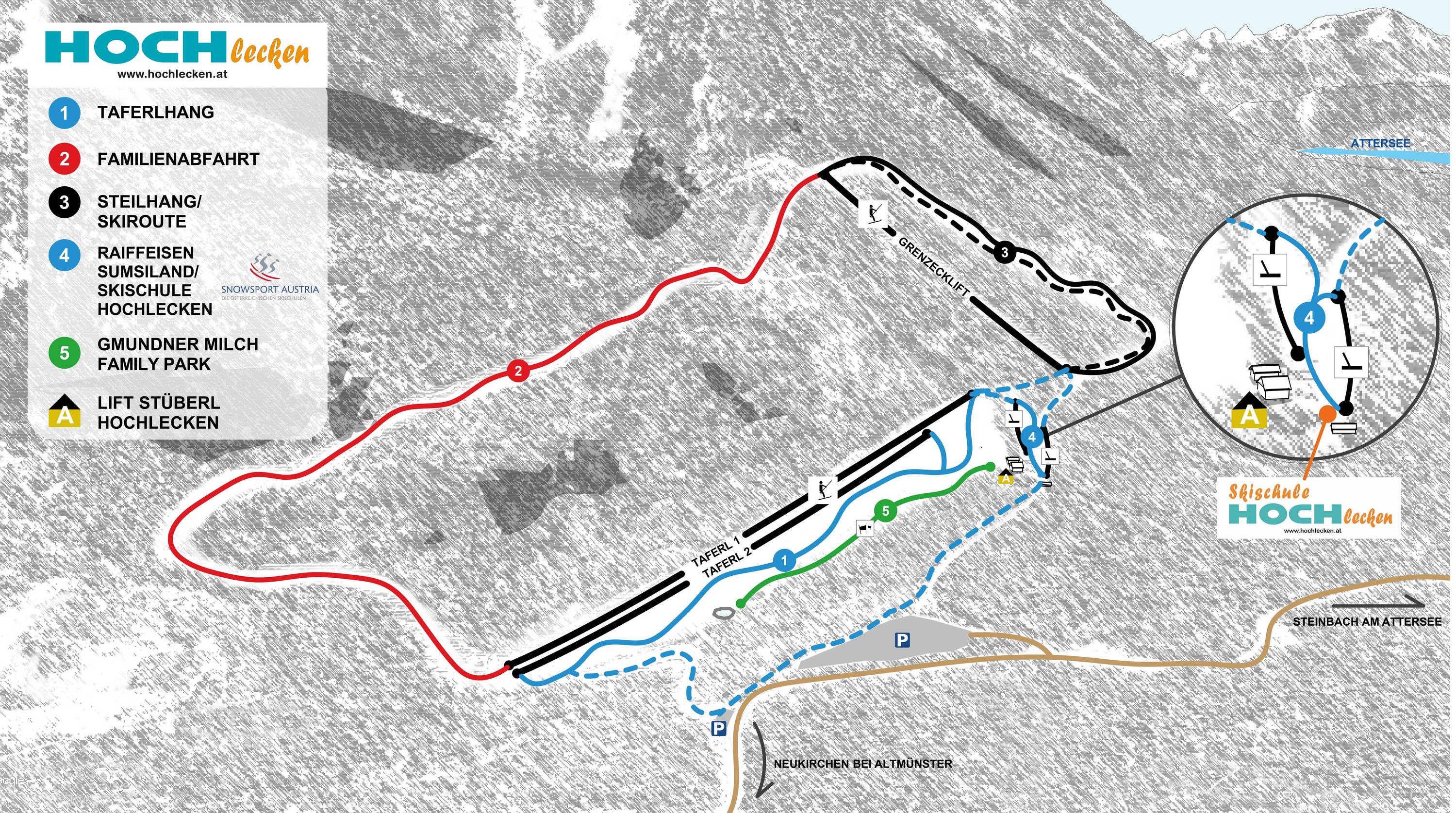 Neukirchen (8 km), Altmünster (15 km), Steinbach am Attersee (7 km) Towns/villages at the ski resort