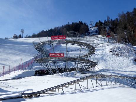 Families have their own areas at the mountain station of the Kombibahn. Next to the Kids Area, you’ll find flat and wide slopes as well as a relaxed atmosphere at the beginner-friendly platter lift. Young people up to 18 years of age only pay the children's rate. Another highlight is the Alpine Coaster Osttirodler. Additionally, a 6.5 km long natural toboggan run leads from Hochstein down to the valley.