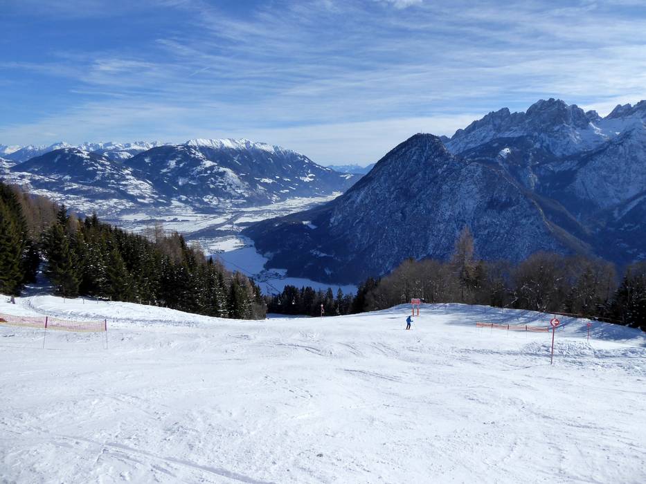Hochstein is the venue for the Alpine Ski World Cup in slalom and giant slalom. Accordingly, the slopes are predominantly challenging. With its red and black slopes, Hochstein is very popular among advanced skiers. Beautiful forest runs lead down into the valley. However, the practice slope and the Kids Area at the platter lift near the top station of the combi lift are also popular with beginners and families. The panorama of Lienz and the Lienz Dolomites is stunning.