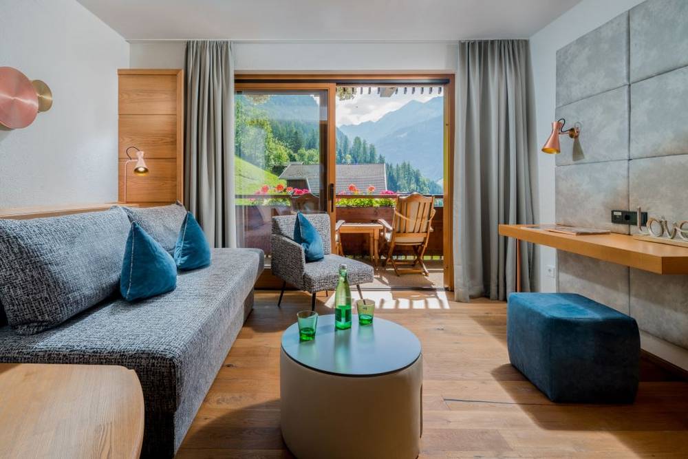 ...are an inseparable unity at the Wellnesshotel Jerzner Hof in Tyrol. Nestled directly on the slope, high above the rushing valley floor, your gaze glides freely and effortlessly over the powerful beauty of the unique Pitztal mountain landscape. From morning until evening, the sun is a guest in the house, enchanting the cozy corners and nooks of our wellness hotel in Tyrol with its ever-changing play of light.