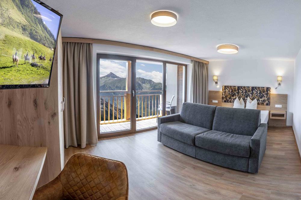 Skiing in the Hochzeiger family ski area in Tyrol. The Hochzeiger Haus is more than just a hut. You’ll stay in a comfortable ski-in-ski-out hotel with completely new rooms featuring balconies at 1,900 meters.