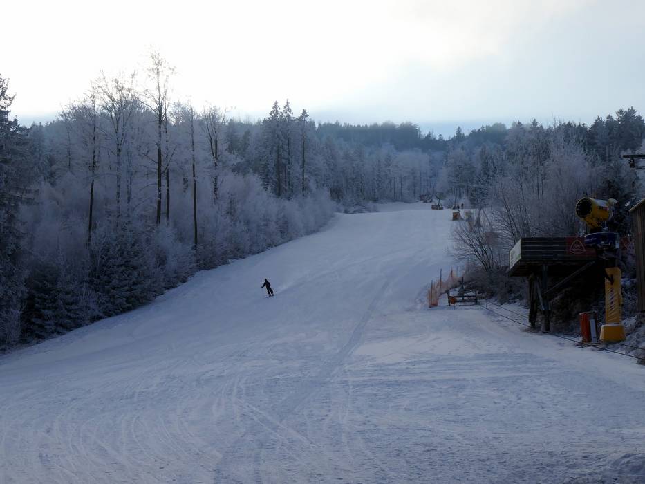 In the Hohenbogen ski area, several slopes run through forest clearings. In the valley area, the runs are easy, while higher up they range from intermediate to sometimes difficult. Thanks to the extensive floodlighting system, all slopes are perfectly illuminated for night skiing. At the summit, you can enjoy a panoramic view of the distinctive peaks of the Bavarian Forest: the Arber, the Osser, the Kaitersberg, and the Voithenberg.