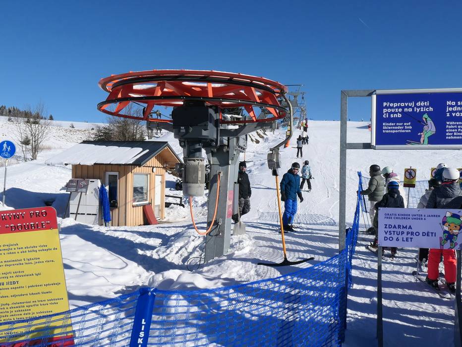 T-bar lift/platter/button lift at the ski resort Hranice – Boží Dar