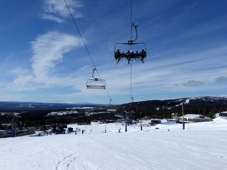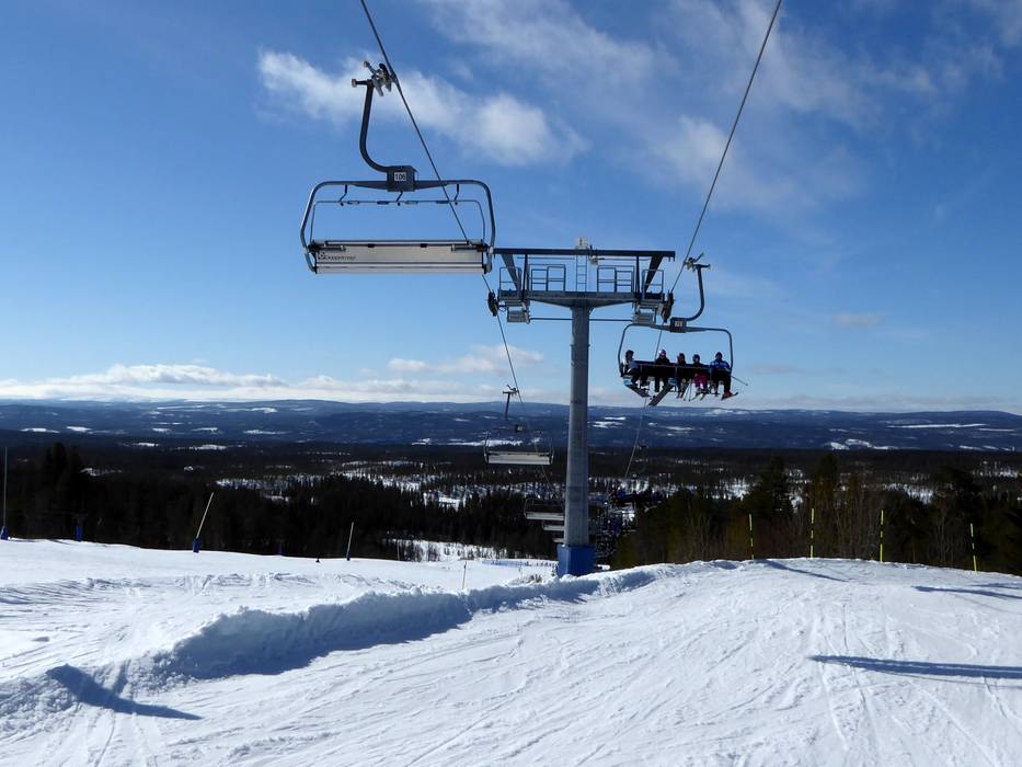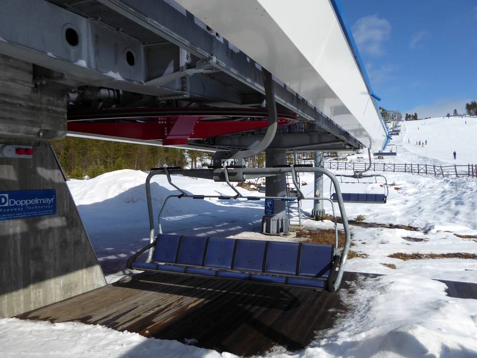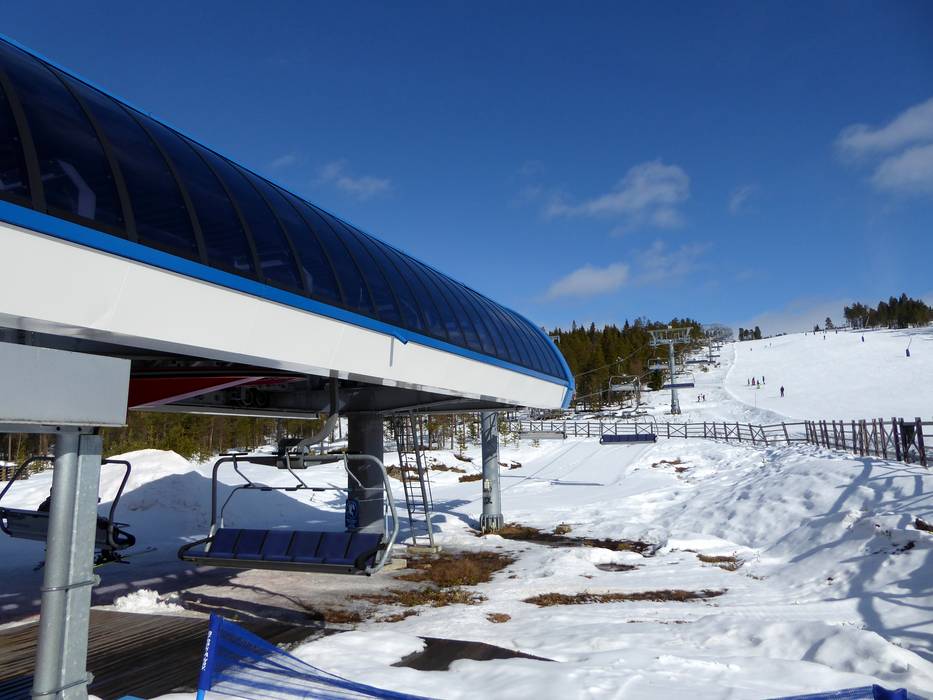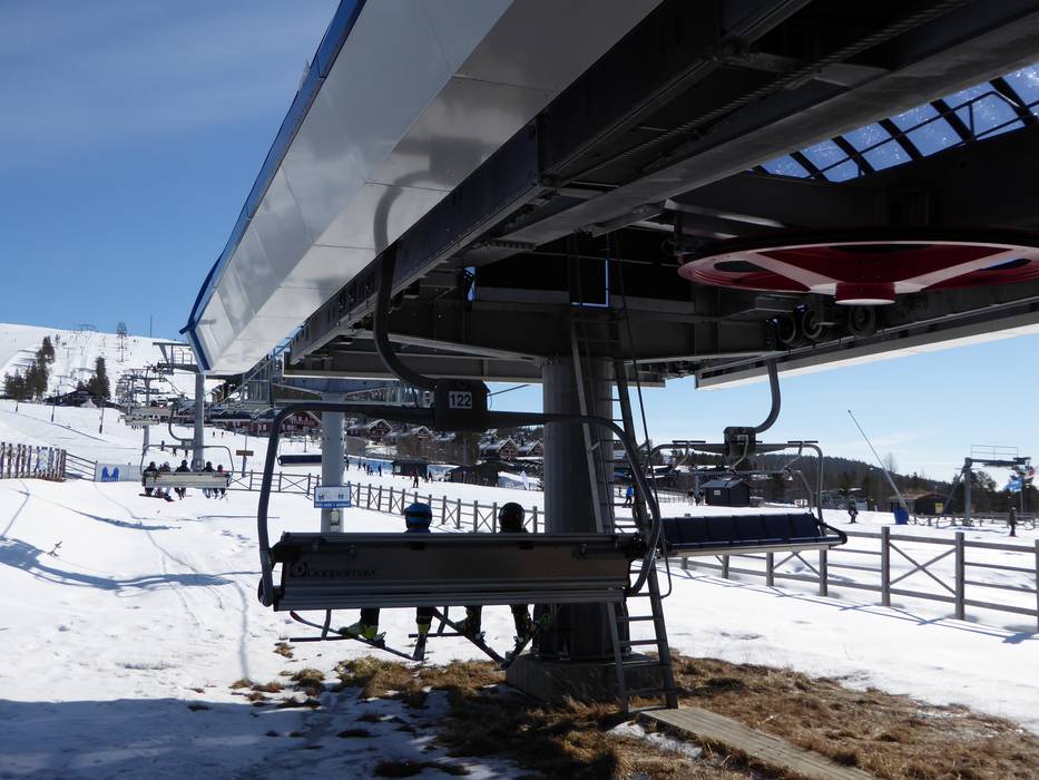 The six-seater chairlift Väst 6:an has a mid-station with a curve. However, you can only get off at the mid-station.