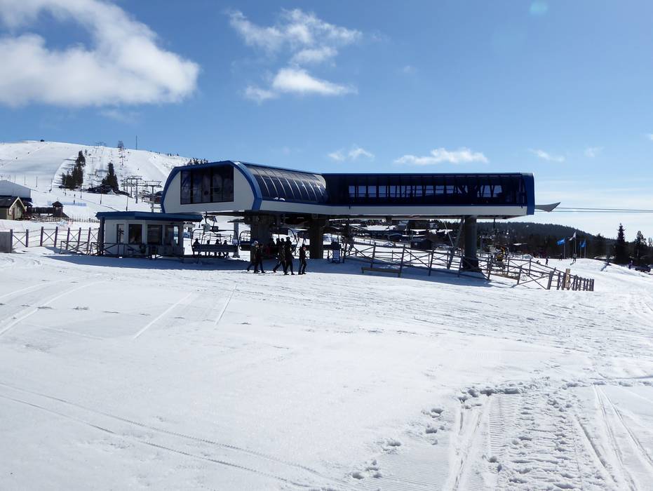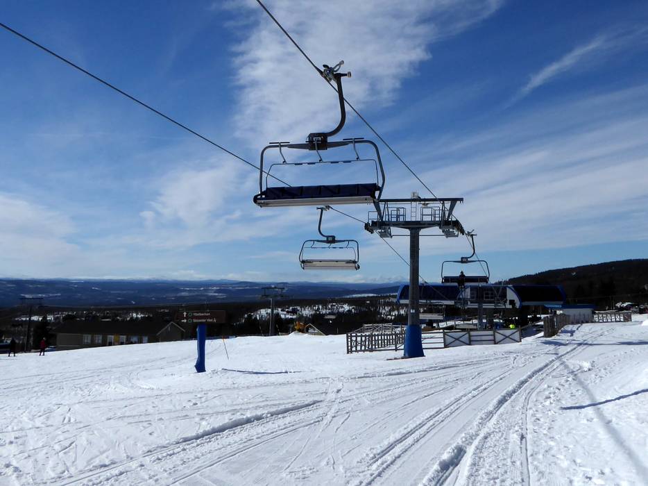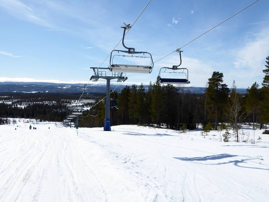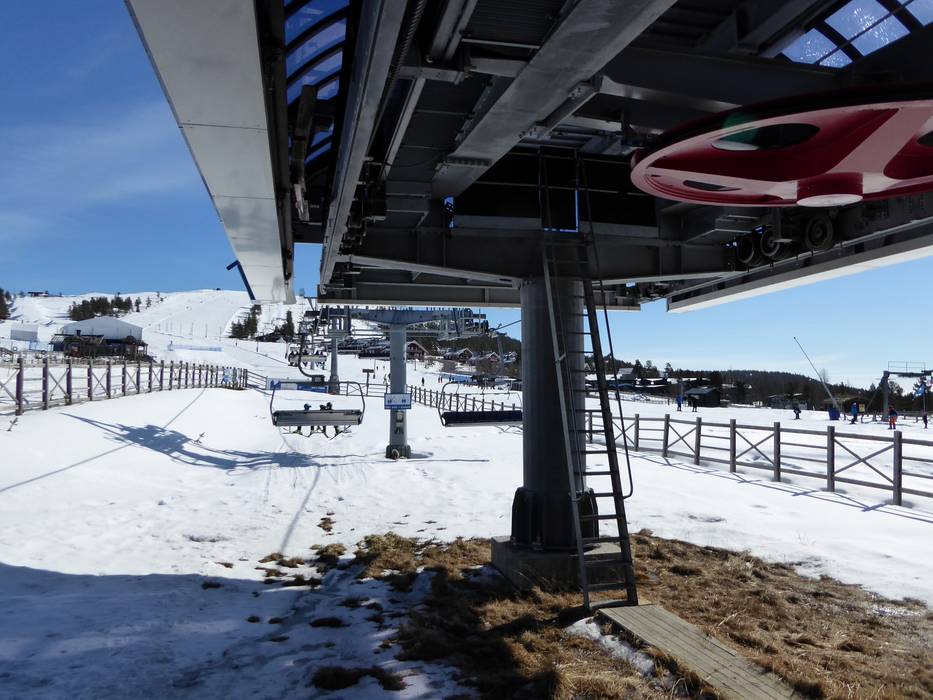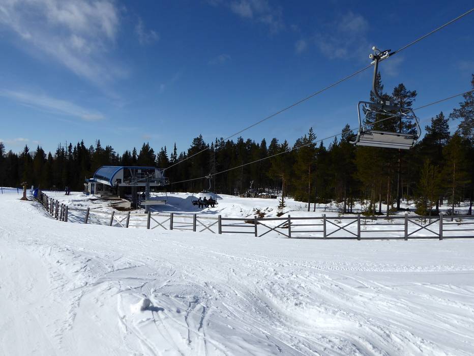 The six-seater chairlift Väst 6:an has a mid-station with a curve. However, you can only get off at the mid-station.