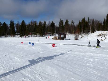 On the west side, you'll find Askes Kinderland with conveyor belts and a platter lift. It is located next to the center of Idre Fjäll and near the mid-station of the six-seater chairlift Väst 6:an.