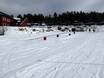 At the Skicenter Syd, families with children can learn to ski at their own pace using the conveyor belt and platter lifts. Fun figures and a small race track complete the offer.