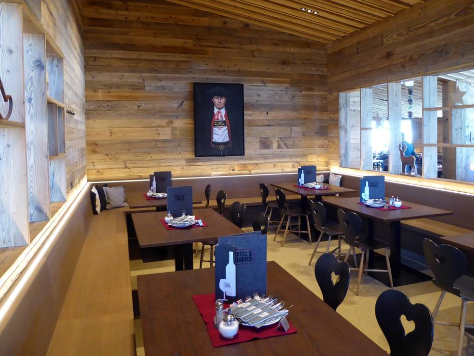 Since the beginning of the 2017/18 winter season, Tafel & Zunder has been delighting its guests. The upscale à la carte restaurant offers local and high-quality organic cuisine. The atmosphere is very inviting, featuring natural materials such as reclaimed wood, stone, and untreated fabrics. Service is also provided on the large sun terrace.