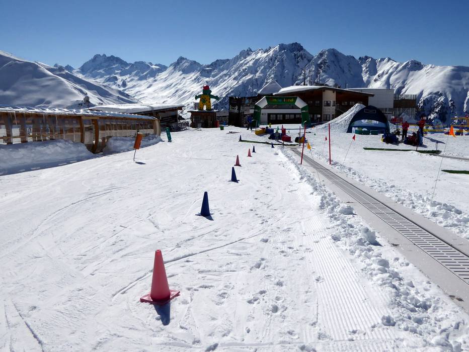 Directly on the Idalp, there is a very beautiful and spacious children's area with several conveyor belts. One of the conveyor belts is even covered. A children's carousel and fun figures complete the offer. The children's area can be used by all guests.