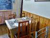 The restaurant is very conveniently located, right on the edge of town and just a short distance from the Front de Neige 1+2 platter lifts. The small indoor area with an open fire can accommodate up to 28 people. However, there is a large terrace that offers plenty of space in good weather. Regional dishes are served.