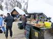 The majority of mountain restaurants are located along the children's area near the village. Most of them are self-service. Many places to stop for refreshments only offer small snacks. In some huts, table service is available. In general, the price level is relatively high.