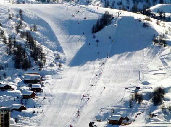 The Super Vallon slope is accessed by the St. Sauveur platter lift. In the lower section, it is very steep.