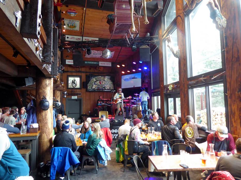 The Mangy Moose is a legendary après-ski spot in Teton Village, known for its rustic atmosphere and great bar. There is a wide selection of drinks and good food. Live music is often offered as well.