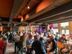 Most of the dining options are located in Teton Village around the valley stations. At the top of the mountain, you can stop at the Rendezvous Lodge or the Casper Restaurant. At the summit, Corbet's Cabin awaits. American cuisine is mostly served. There is a good balance between table service and self-service.