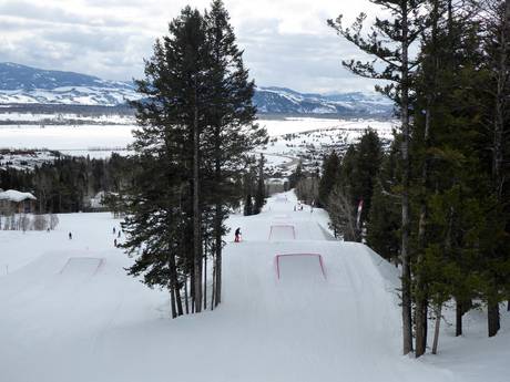 The various snowparks (Bronco Park, Antelope Flats, and Eagle's Rest) are located in the lower area of Jackson Hole and are especially popular with advanced and professional riders, but beginners can also improve their skills here. The terrain parks are easily accessible via the Teewinot Express and the Eagle's Rest chairlift.