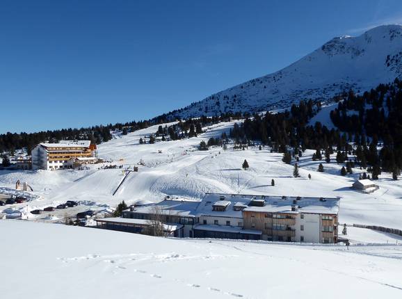 In the middle of the ski area, there are the two hotels Schwarzhorn and Jochgrimm with direct slope access. More accommodations can be found at Passo Lavazè.