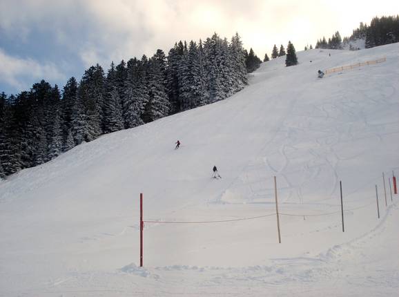 There are no difficult slopes, only two short dark red slopes running parallel to the Sorgschrofen lifts in the upper section. However, you have the option to venture off-piste into the deep snow.