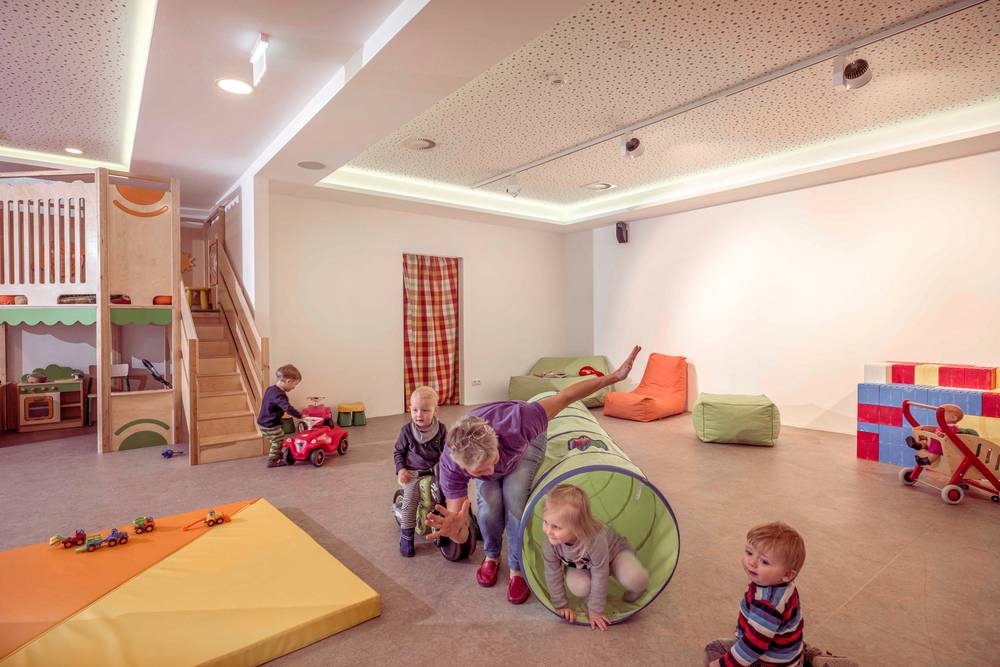 Seetal is especially family-friendly and does everything to ensure that children feel at home. Playrooms, a climbing tower, petting zoo, labyrinth, and plenty of space to discover something new around the hotel make children’s hearts beat faster. The Alpin Family Resort Seetal is a member of the Family Select Hotels and has been awarded 5 out of 5 points in the Willi Wiesel Quality rating, which corresponds to the highest quality category of Family Select and children’s hotels in Europe. Childcare is available 6 days a week for 8 hours per day for children from 4 years old.