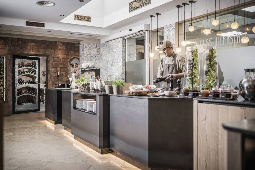 The kitchen team creates delicious, flavorful dishes using high-quality natural products, preferably from regional farmers and with plenty of fresh herbs from the hotel’s own herb garden. The Seetal 3/4 pampering board includes a large breakfast buffet, a late lunch buffet with sweet and savory options from 2:00 pm to 5:00 pm, and an exquisite 5-course dinner menu with salad bar and various choices—from Austrian classics to vegetarian cuisine.
