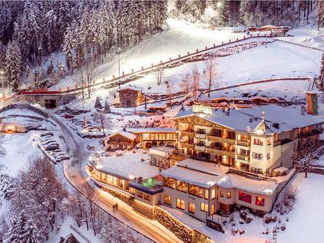The Alpin Family Resort Seetal is located slightly above Kaltenbach and offers a magnificent view over the Zillertal valley. The ski slope passes just a few meters from the hotel, allowing guests to access the slope directly from the hotel and ski down to the valley station of the Hochzillertal lifts. At the end of a ski day, you can ski right back to the hotel. Just above the hotel, you'll find the Seetal-Schirmbar, a great spot to enjoy some après-ski.