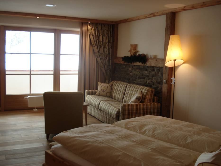 Highlights include the four premium suites and the wellness area. From the sauna, you have a breathtaking view of the surrounding mountains. The catering is at a 5-star level. If you want to secure one of the eight elegant double rooms or the four suites, you should book in advance.