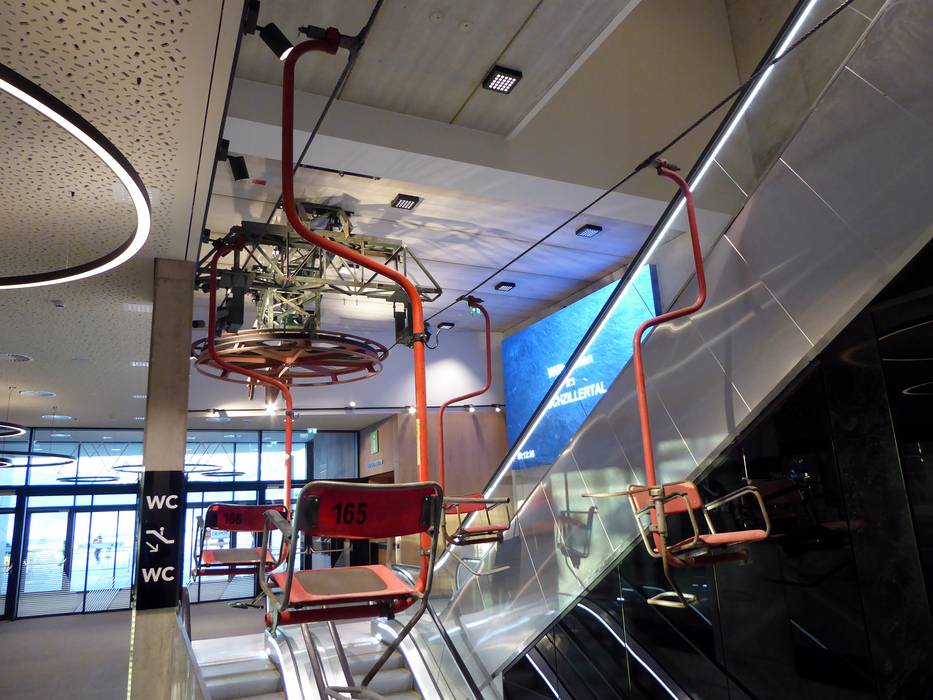 The Mountain View mountain restaurant is a technical masterpiece. It offers plenty of space for ski groups, clubs, and families. The self-service restaurant features an excellent selection of traditional Zillertal dishes as well as burgers, pasta, and pizza. An appealing salad buffet and desserts are, of course, also available. Complimentary fresh tap water is provided. A large sun terrace with panoramic views and two attractive bars complete the offering. As decoration, you will find the old gondolas of the Spieljochbahn and an old single chairlift. Additionally, an info point, ski depot, sports shop, mountain guide center, ski school, group restaurant, apartments, and the Zwergerlclub guest kindergarten are all integrated into the Mountain View.
