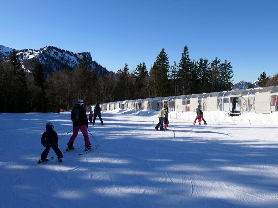 The Kasberg family ski area is very well suited for beginners. With Brunos Kinderskiarena, it offers a large practice area with conveyor belts right next to the mountain station of the gondola lift. Easy slopes at the drag lifts next to the practice area ensure learning progress. The upper part of the ski area can also be accessed via easy slopes. The ski school offers group courses and private lessons for all age groups.