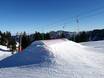 At the Fun Jet drag lift, a large snow park with mostly easy obstacles and jumps delights visitors.