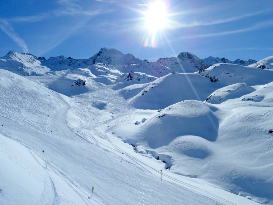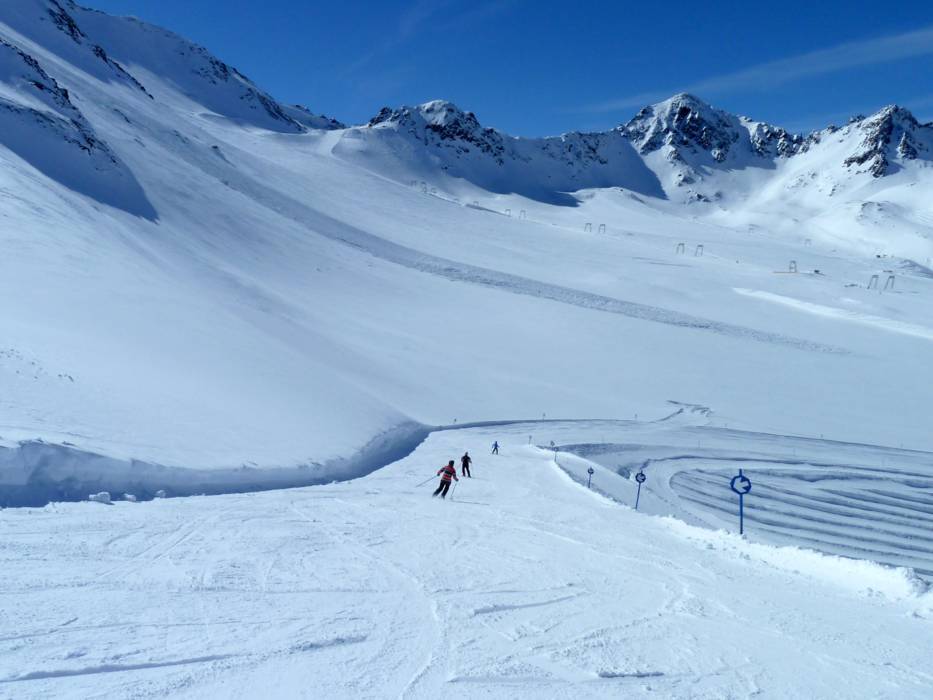 The Kaunertal Glacier provides snow reliability from October until June. On the wide, empty slopes, everyone finds room for their curves. The Kaunertal Glacier rises up to 2750 m and offers a gorgeous view of the surrounding mountains. You can ski up to 3108 m on the Kaunertal Glacier.
