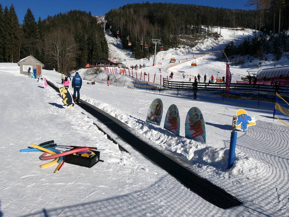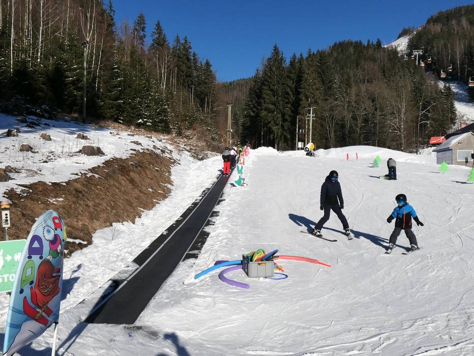 Fast and modern chairlifts lead up to Klínovec (German: Keilberg) from several sides. Several of them are equipped with weather protection covers. Drag lifts on Klínovec complement the offer. At 1,244 m, Klínovec is the highest peak in the Ore Mountains. Klínovec is directly connected to Boží Dar. Around Boží Dar in Hranice, Za Prahou, and Neklid, there are mainly drag lifts, but also a chairlift. Conveyor belts in the children's areas at the valley stations complete the range of facilities.