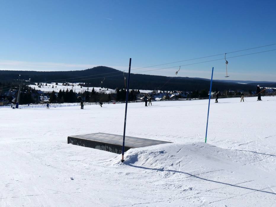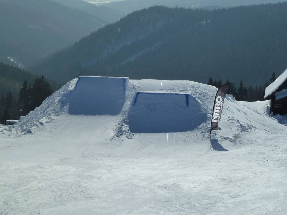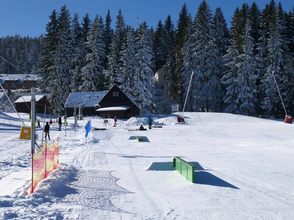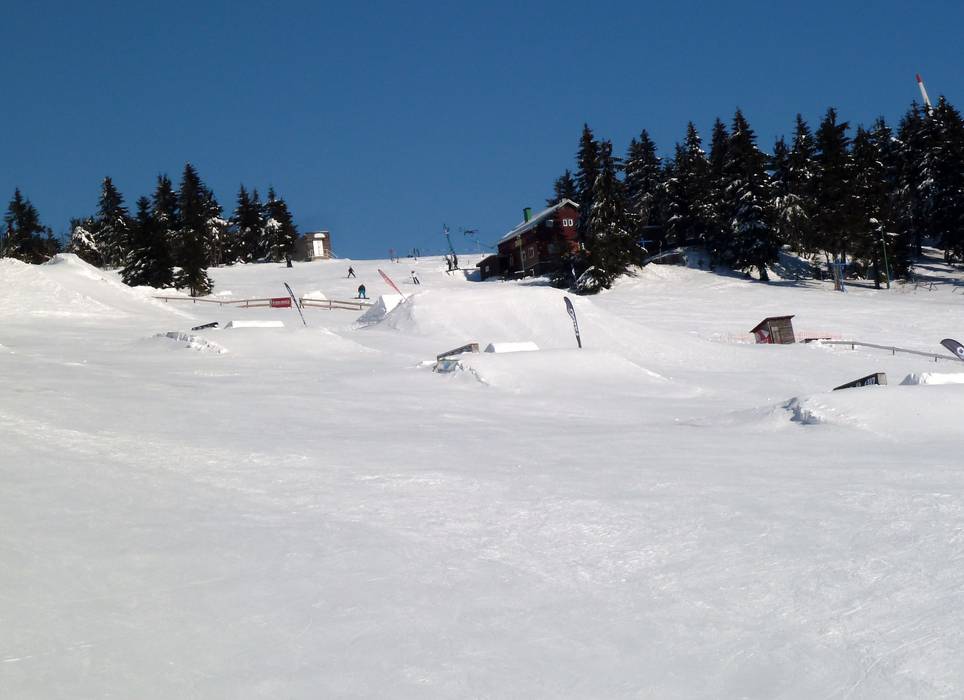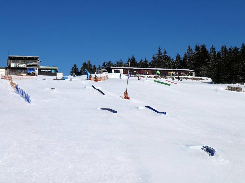 The snowpark in Neklid is one of the oldest in the region and offers many obstacles and kickers.