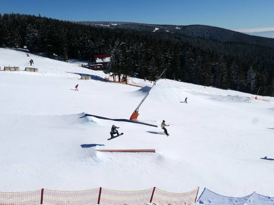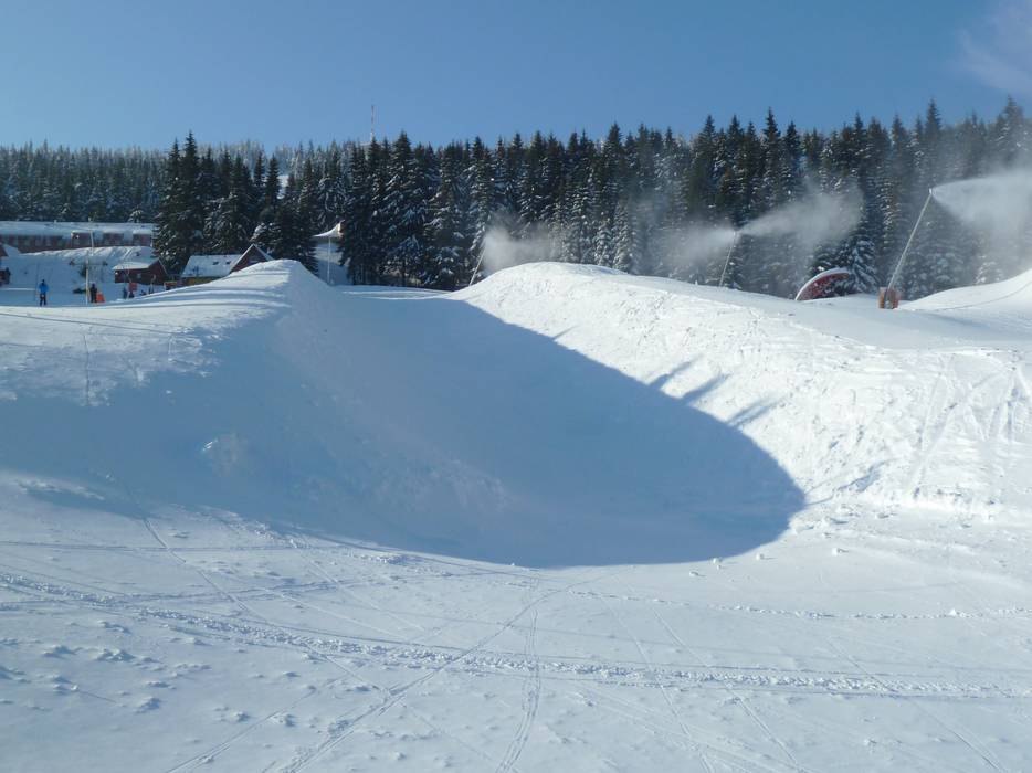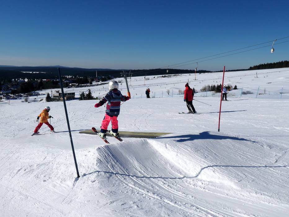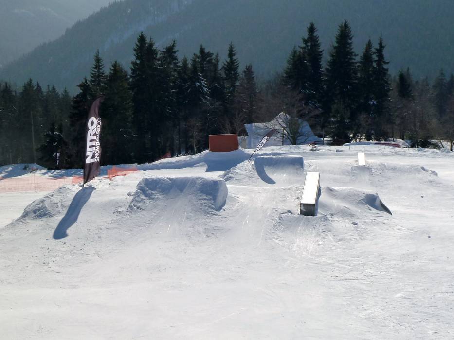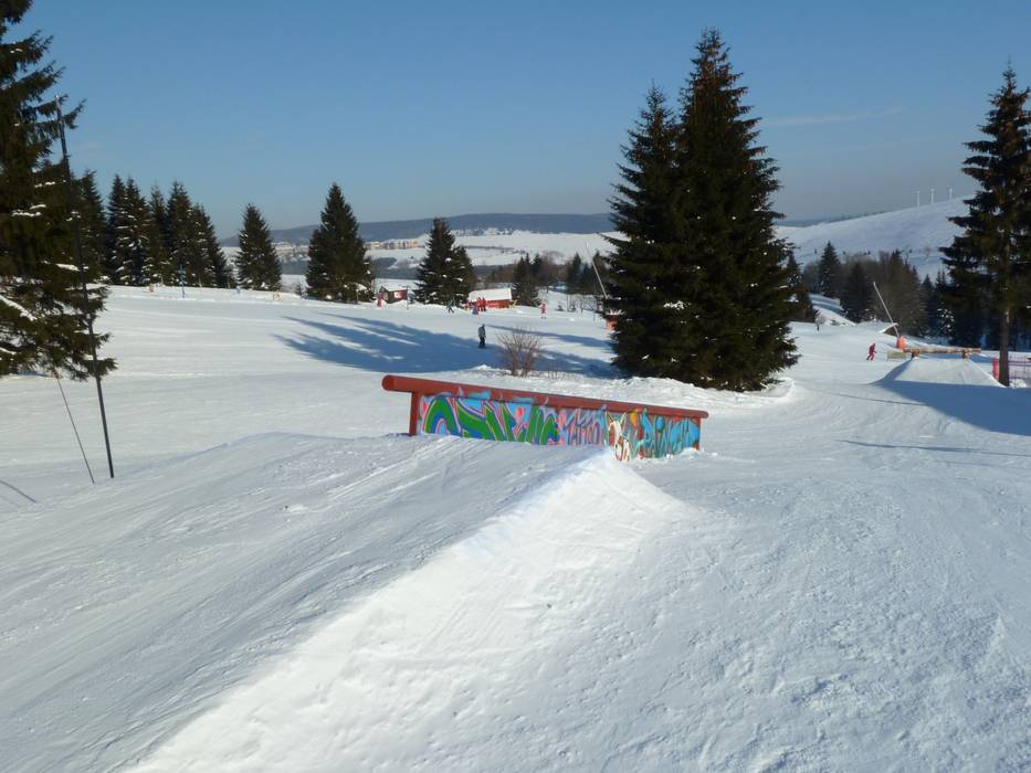 The snowpark in Neklid is one of the oldest in the region and offers many obstacles and kickers.