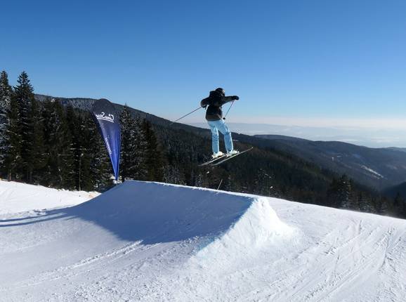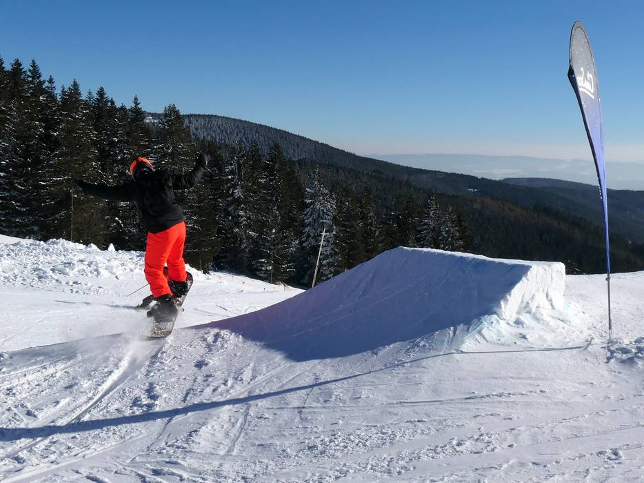 Klínovec offers attractive opportunities for freestylers and snowboarders with two snow parks.