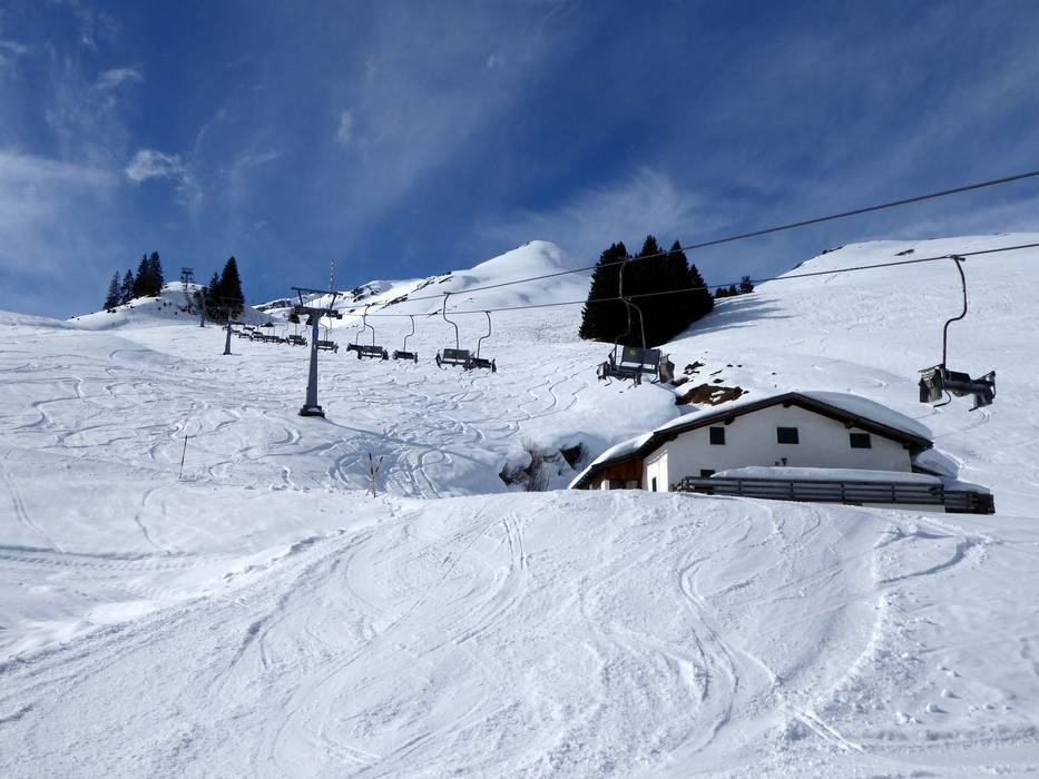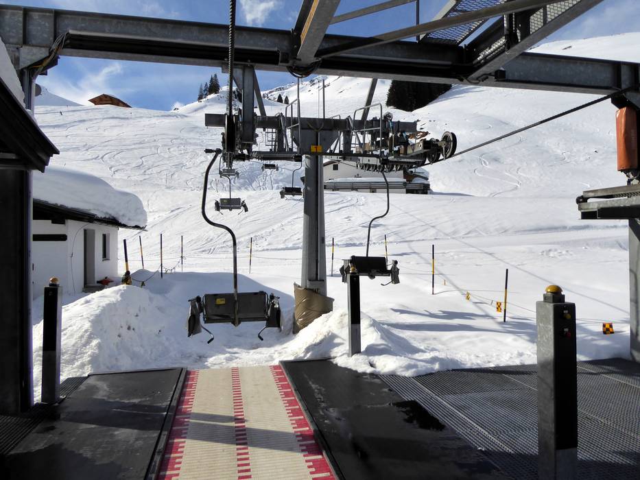 The 2-seater chairlift Raintal featured a conveyor belt entry. It was replaced by the 10-seater gondola lift Raintal.