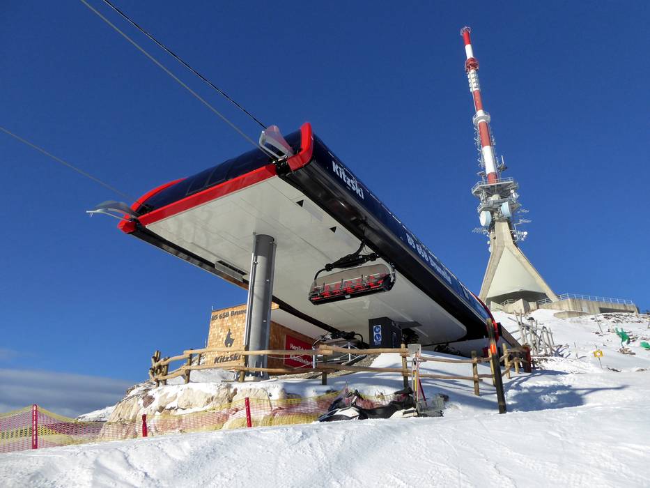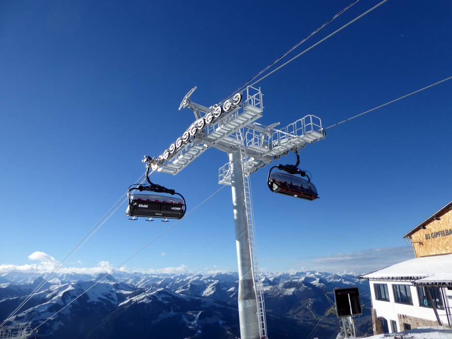 The construction of the 6-seater chairlift Brunelle marks a significant quality upgrade at the Kitzbüheler Horn. Obvious improvements include a much higher travel speed and comfortable chairs with weather protection hoods, seat heating, and automatically opening safety bars.