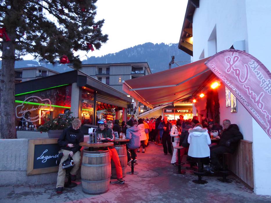 Two umbrella bars and a rustic hut await winter sports enthusiasts. With a great atmosphere, the party goes on until it gets dark. Then it's time to ski back to Kirchberg.