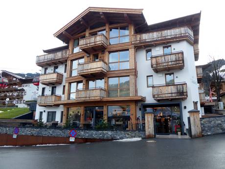 Directly at the valley station of the Hahnenkammbahn in Kitzbühel at 800 m