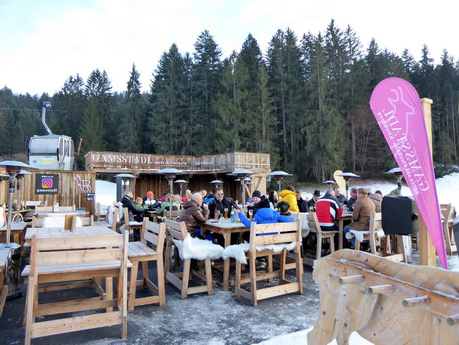 At the Gamsstadl, you can end your ski day in a relaxed atmosphere with a glass of beer or champagne. There is good music and a lively mood. It's only a few meters to the valley station of the Fleckalmbahn.