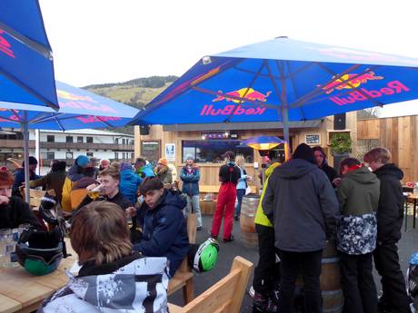 At the Gamsstadl, you can end your ski day in a relaxed atmosphere with a glass of beer or champagne. There is good music and a lively mood. It's only a few meters to the valley station of the Fleckalmbahn.