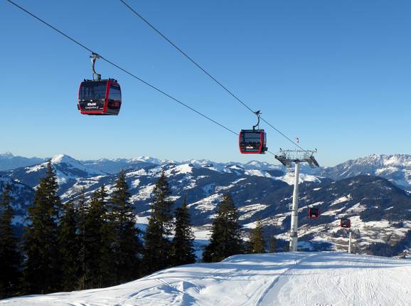 The lifts and cable cars in the Kitzbühel/Kirchberg ski area have been modernized in recent years, so guests can enjoy state-of-the-art lifts almost everywhere, often equipped with weather protection hoods and heated seats. Modern gondola lifts take you from the valleys up into the KitzSki ski area. In addition, there are drag lifts, button lifts, and conveyor belts distributed throughout the ski area.