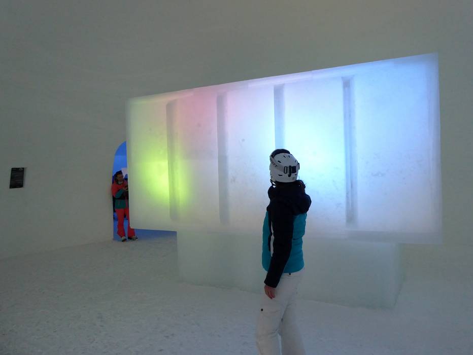 You can relax to chill sounds on the sun terrace of the ICE CAMP. There is also a bar and music inside the igloo. 60 tons of ice and 2,500 cubic meters were used for the construction of the ICE CAMP.