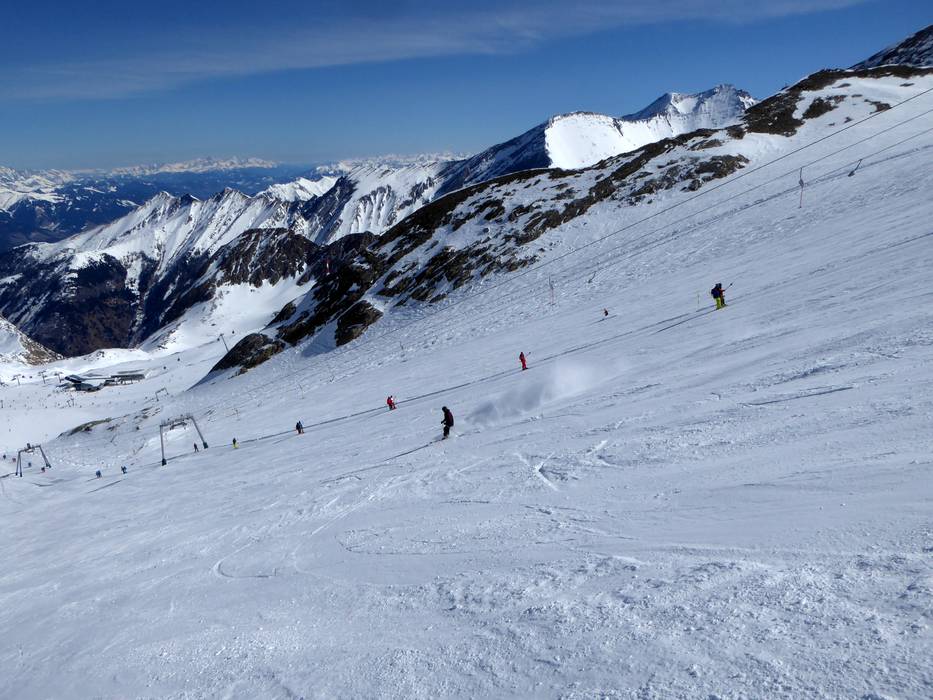 The Kitzsteinhorn is a paradise for advanced skiers. Those who prefer groomed slopes stay at the Maurer lift or enjoy the "Black Mamba," which is up to 63% steep. For powder enthusiasts, the Freeride XXL offering is particularly outstanding: 5 freeride routes close to the lifts are marked X1-X5 and have names (Ice Age, Westside Story, Left Wing, Jump Run, and Pipe Line). There is a modern information system for off-piste skiers with the Freeride Info Base next to the Alpincenter and Freeride Info Points directly at the entry to the routes. Additionally, there is an avalanche search field for training at the Alpincenter. In the Maiskogel ski area, there is another challenging descent.