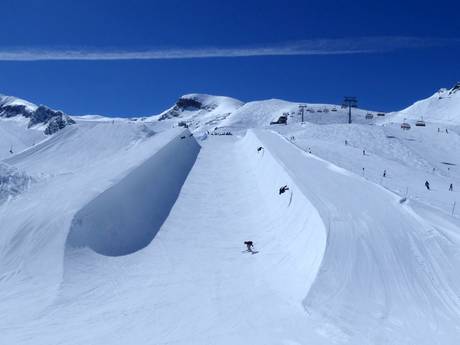 The Kitzsteinhorn offers world-class snow parks and a superpipe measuring 150 m in length and 6.5 m in height. The parks at Kitzsteinhorn are maintained daily and kept in perfect shape by a dedicated shape crew, ensuring that nothing stands in the way of ultimate freestyle fun. At Maiskogel, there is a small snow park for children.