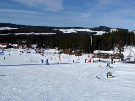 The large children's area is located at Tranantorget and includes a conveyor belt and several button lifts. Here, little ones can enjoy winter sports on very easy slopes. Fun figures and various slalom courses complete the offer.