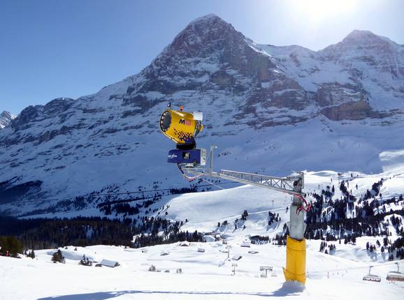The main runs are located above 1,500 m and can be covered with snow using a high-performance snowmaking system. The valley runs down to Grindelwald and Wengen are fully covered with artificial snow. This makes the Kleine Scheidegg/Männlichen ski area very snow-sure.