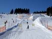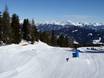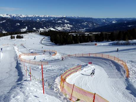 Next to the snowpark, the snakerun winds its way down into the valley. Fast turns and waves provide plenty of fun.